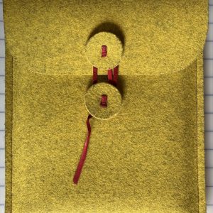 1/4″ thick felted wool laptiop bag with leather closure.