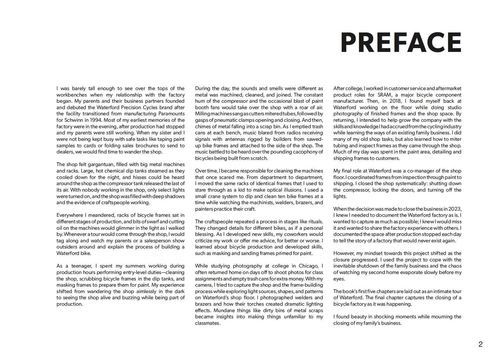 Photographer and author Tucker Schwinn captures a distinct and intimate perspective of the industrial space through the lens of someone who grew up witnessing operations and working within its walls and who returned as an adult to work there until its last day. It is a layered story told through portraits of machines, process, and textures that only come from decades of use and wear at the hands of expert craftspeople. It chronicles the ending chapter of a family legacy with deep roots in Americana, Midwest manufacturing, and cycling history.Tucker Schwinn is a photographer and creative based in Milwaukee, Wisconsin.