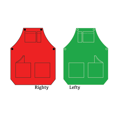 We love you, Lefties, so we make aprons with reversed pocket configurations for your sinister (get it?) inclinations.